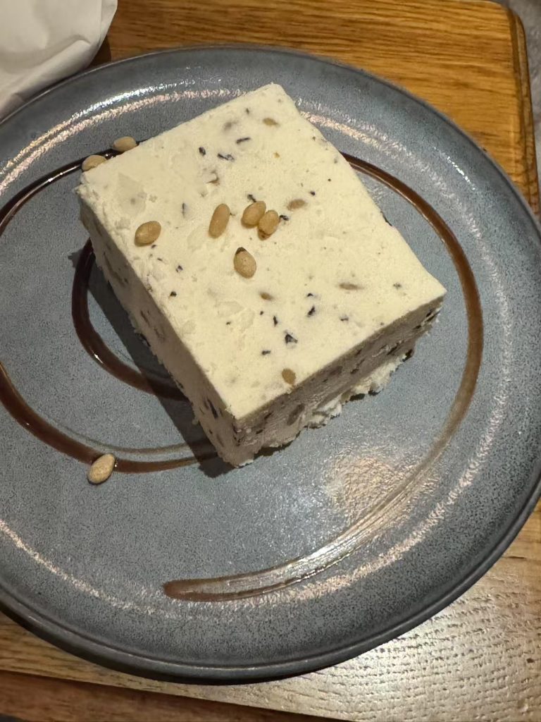这个冻糕好像是酸奶做的,吃起来有点硬,不过吃起来甜甜的还是很好吃。虽然但是两斤的牛排实在太扎实了,蛋糕就只是尝了一下咯。