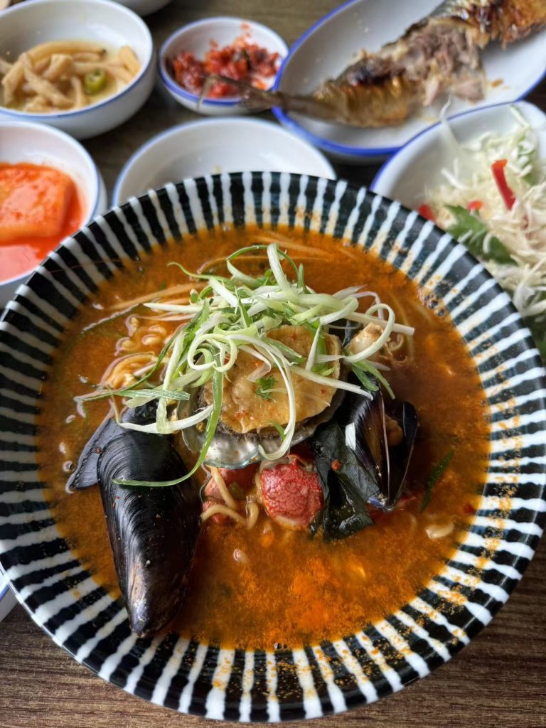中午我们去了涯月邑,附近吃的海鲜拉面(这家店里貌似本地人比较多一点,应该在当地的认可度比较高吧),话不多说,附图!