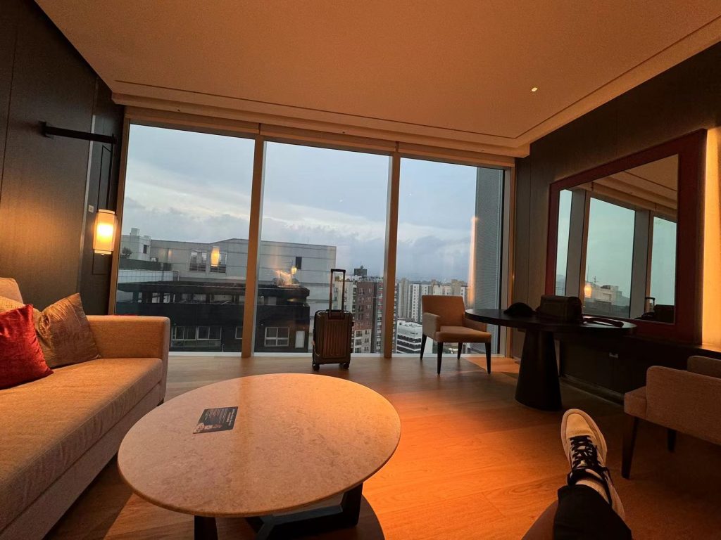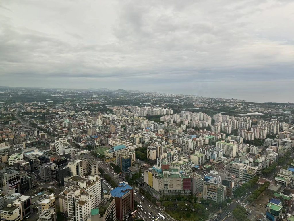 小红书上说,推荐住在市区然后尽量不要换酒店就住一家。我觉得这点是ok的。不过我们并没有这样(就是说我们三天住了三个酒店),虽然拿行李稍微麻烦了点,但是收获了高性价比了。比如第一天距离要打卡的吃饭的地方很近;第二天住上了市区最高的楼,俯瞰一整个市区和机场;第三天住海景房(吐槽一句,我们的房间没朝海,朝的是里面,气shu)。【注:济州酒店都是下午15:00后入住,第二天11:00前退房】
