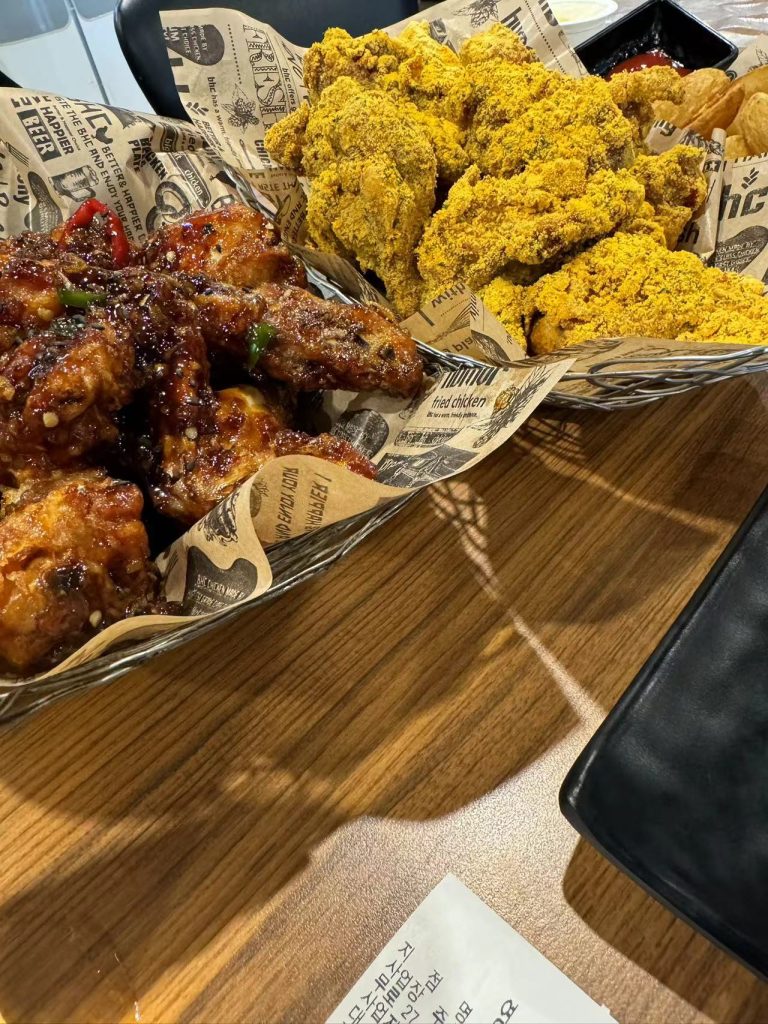 刚到济州岛的时候已经是中午了,和炫宝已经饿的不行了就直接在市区找bhc炸鸡开吃了。先附图了: