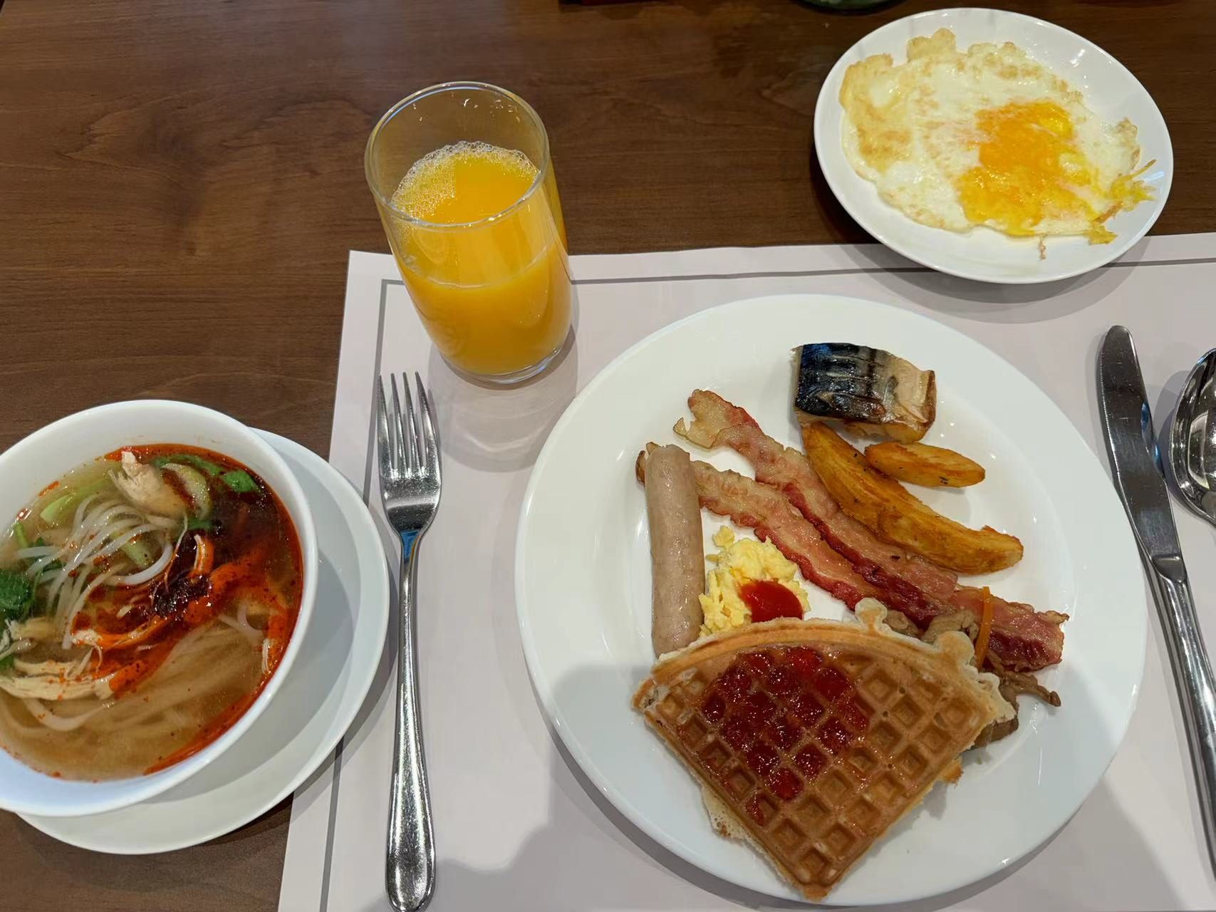早饭是前面提到的济州阳光酒店的自助早餐,种类是很齐全的!其中那个越南米粉印象挺深,有点酸酸辣辣的味道,我是一口气把汤都给喝完了嘿嘿。还有我最爱的青花鱼,我真的好后悔没有再多拿两块!