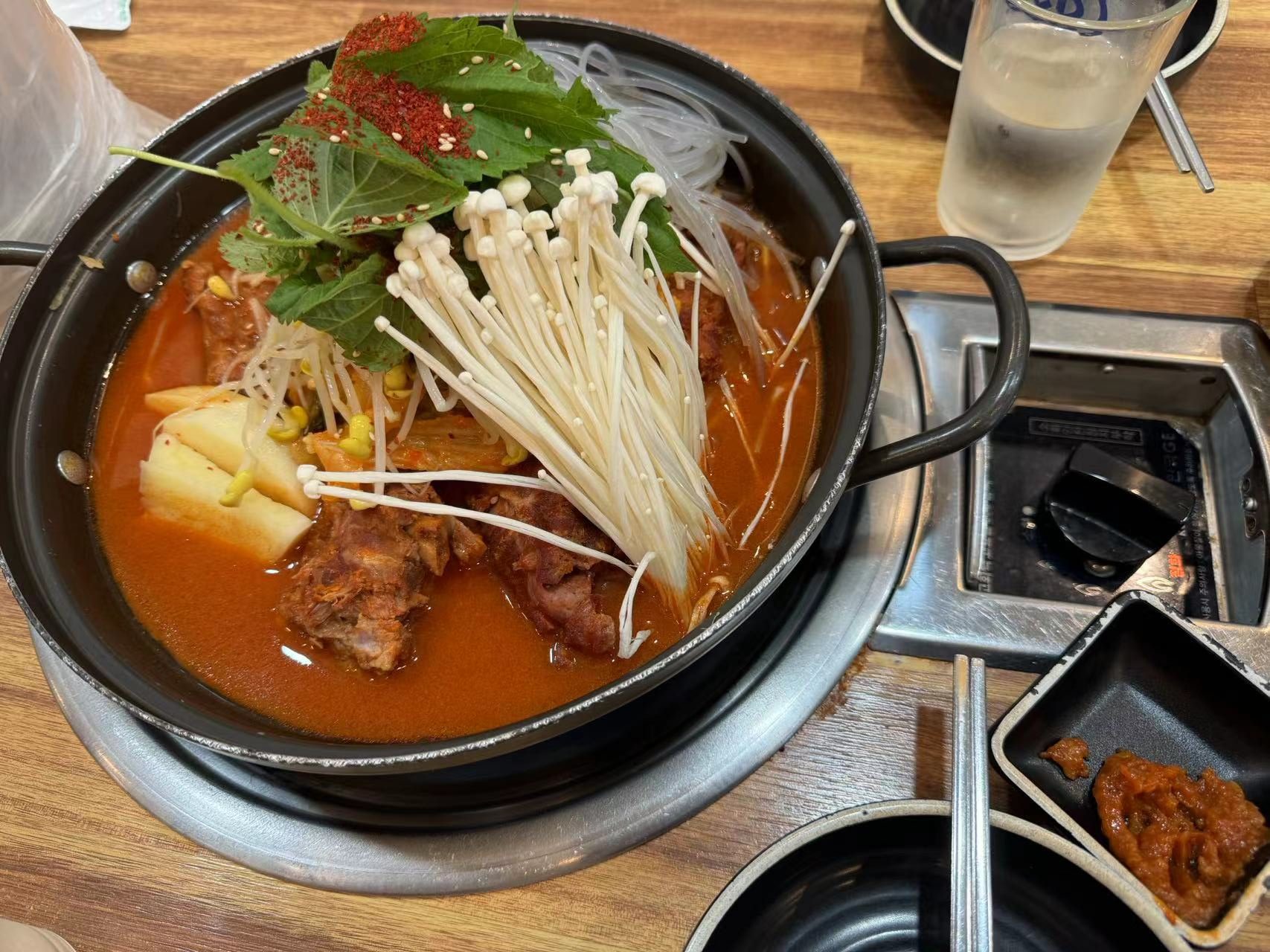 晚饭是在市区里吃的,说什么来济州岛一定要去吃24h土豆脊骨汤,正好楼下就有。因为是在是太饿了就随手拍了一下,直接开炫了。