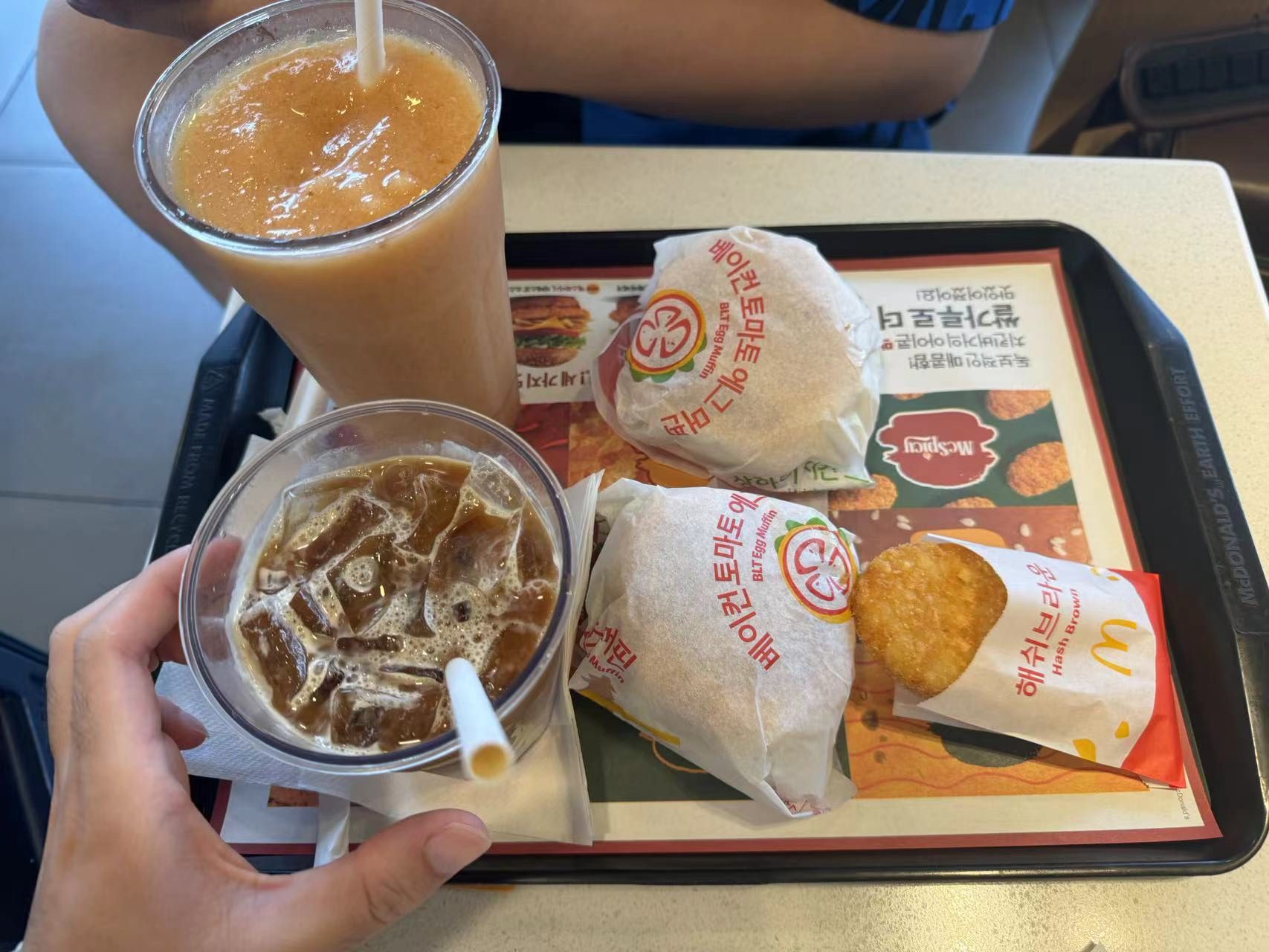 最后一天早上吃上了我心心念念的韩国麦当劳,我想着韩国麦当劳有没有什么国内没有的东西可以尝试一下,后面发现好像没啥(主要没有中文只能看英文)。
