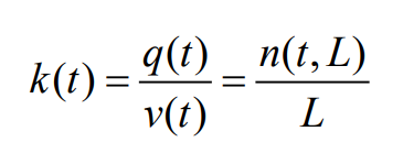 其中,n(t,L)是在 t 时刻,长度为 L 的道路区间内的车辆总数。(注:这个公式基于假设交通流是均匀的,即在短时间和空间尺度内,交通参数是连续和可微的。)