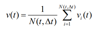 对在时间间隔 Δt 内通过观测点的所有车辆,计算其速度的平均值,即得到该时间段内的平均车速。单位为米/秒(m/s)。通过视频数据,可以测量每辆车通过观测点时的速度 vi(t)。平均速度 v(t)表达式为: