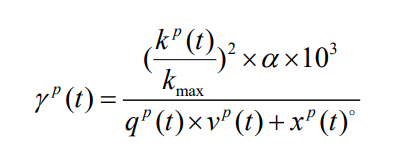 式中,γp(t)表示在地点 p 的 t 时刻对应的交通时段的拥堵系数;kp(t)表示在地点 p 的t 时刻对应的车流密度;kmax表示在当前路段范围内可以容纳的最大车流密度值;α 表示该路段的道路疏通能力,具体规则在下文中给出;qp(t)表示在地点 p 的 t 时刻的车流量;vp(t)表示在地点 p 的 t 时刻的车流平均速度;xp(t)。