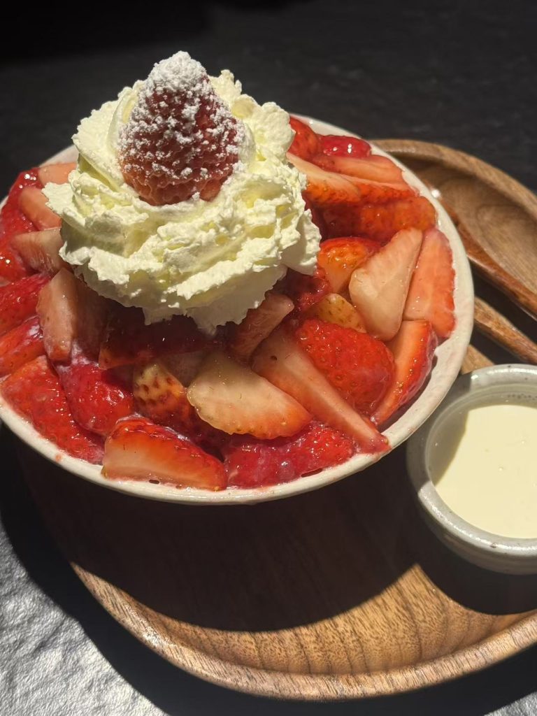 草莓冰淇淋也很奈斯,尤其对喜爱甜甜食物的人。一勺草莓冰淇淋和沙冰入口真是相当丝滑了。