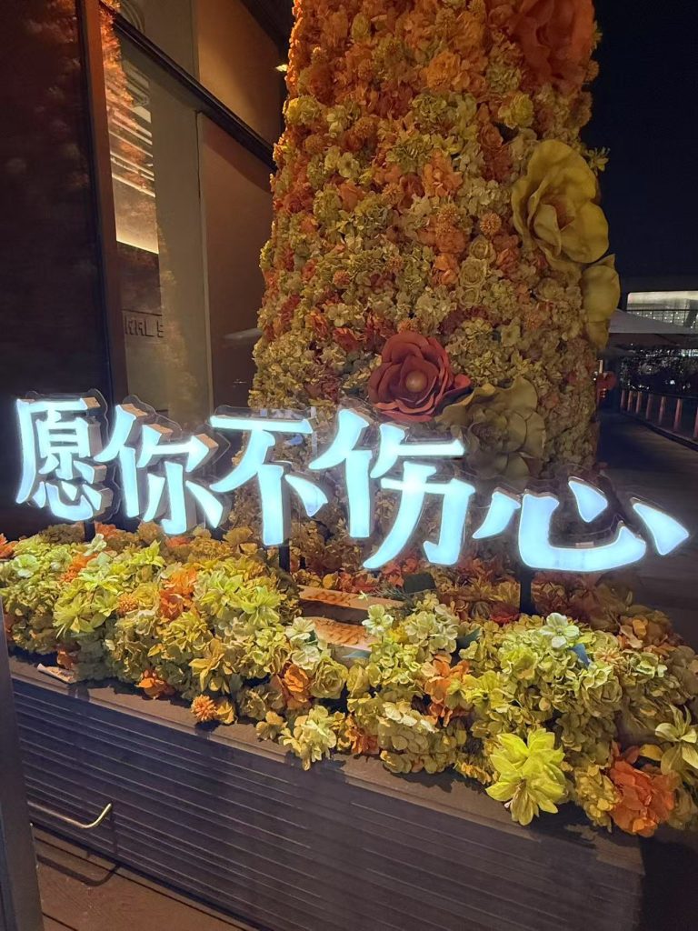 到杭州已经快晚上7点了,是准备去吃杭州东站的韩式漂亮饭的,但就是说周六晚上实在是太火爆了,以至于7点多去排队前面还有152桌,于是去吃了芥青章鱼烧垫肚子(没拍就给炫光了)。由于152桌是在是太慢了!在东站万象汇附近转了两圈后,就去了一家很显眼很好看的小咖啡厅了,名字也很有趣——”不伤心理想国“。